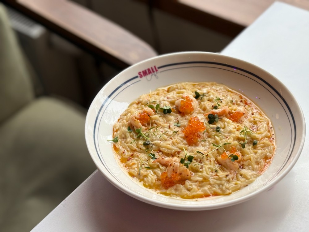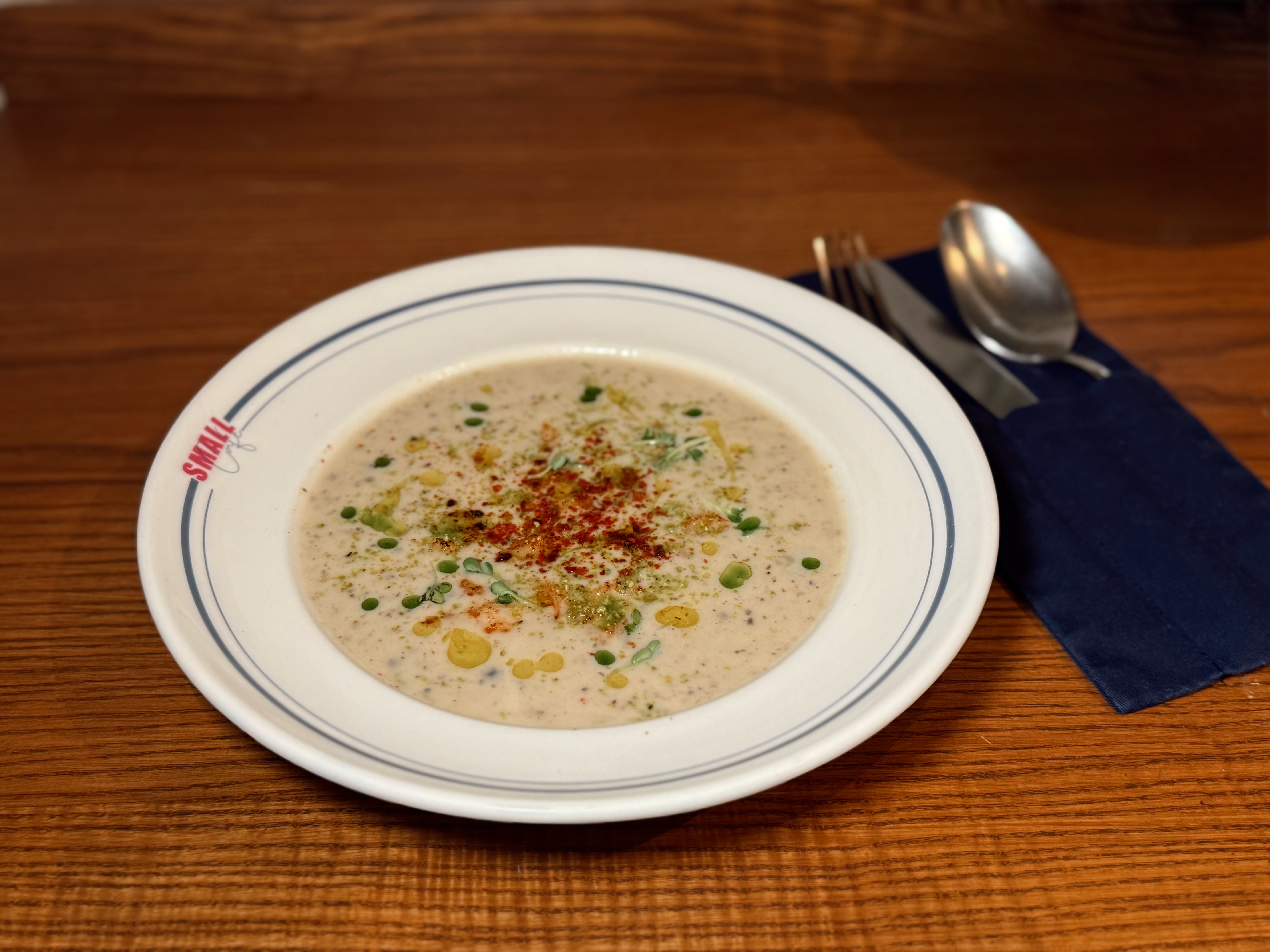 Крем-суп із цвітної капусти з креветками та фісташкою
