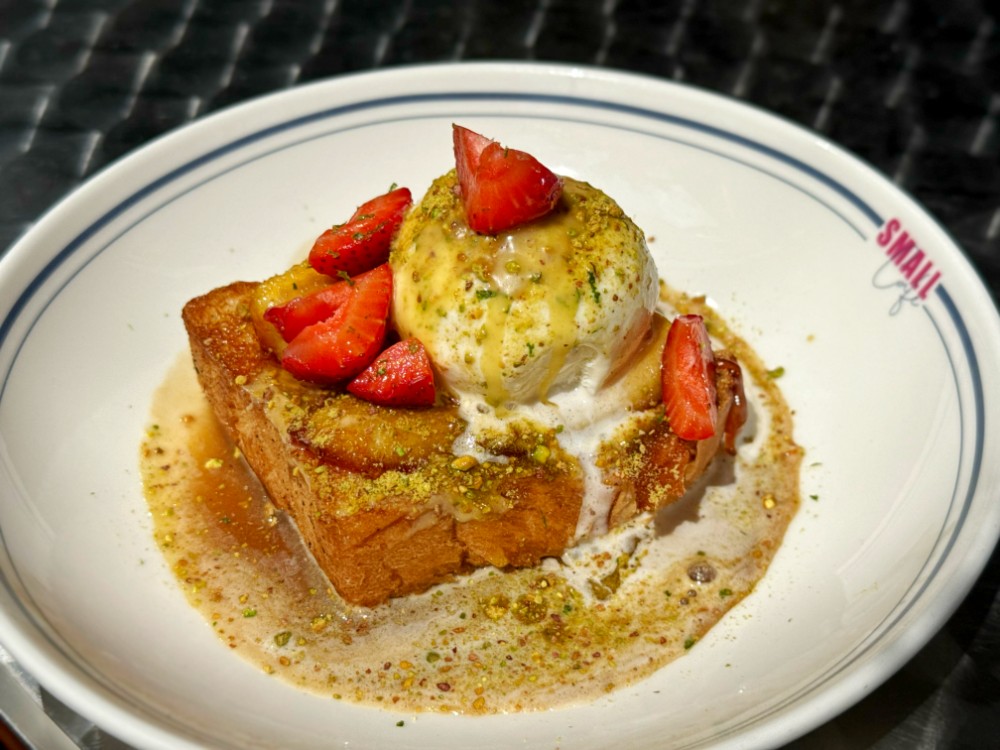 Френч Тост з карамелізованим бананом, солоною карамеллю та домашнім морозивом